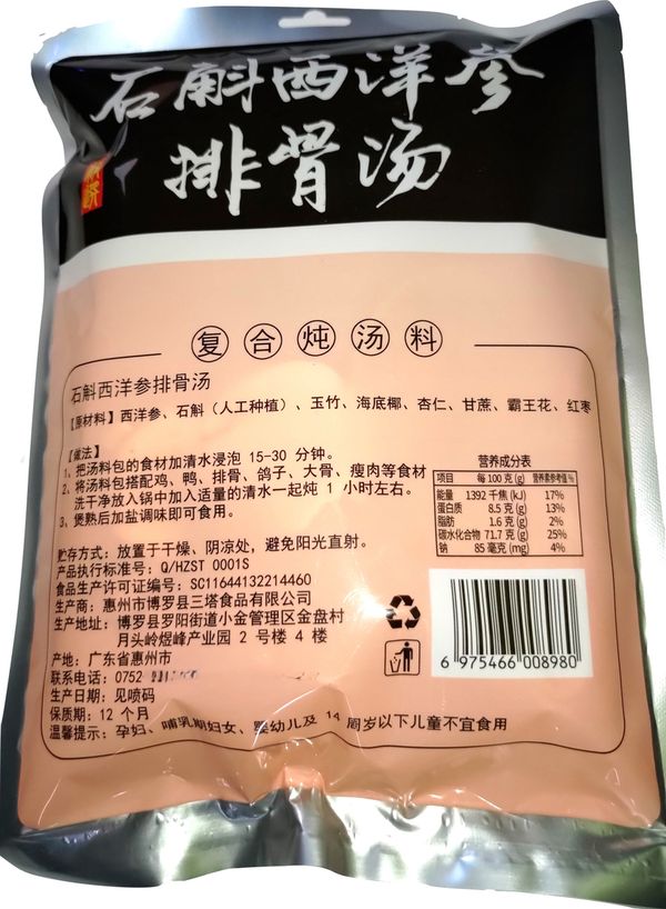 石斛西洋參排骨湯 (不含肉類) 100g
